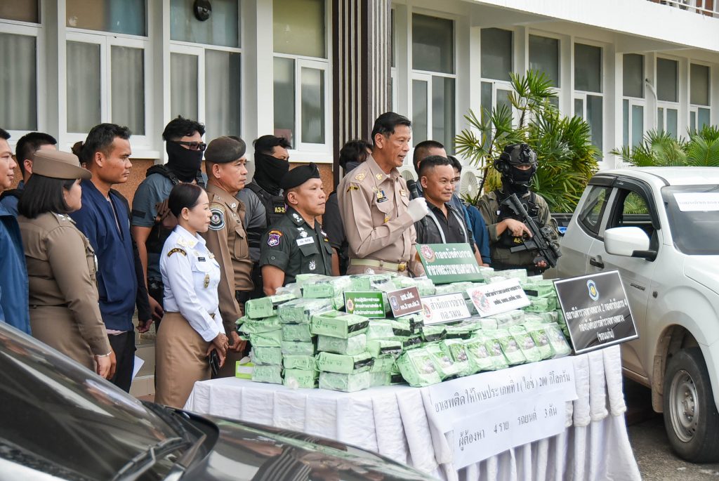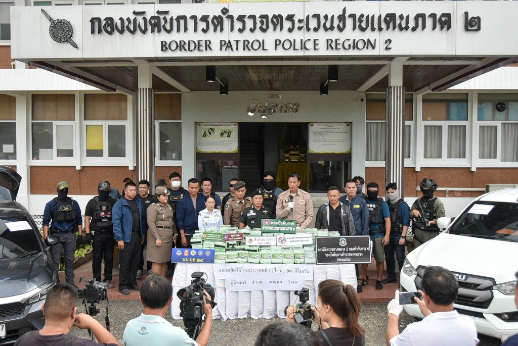 ตชด.ภาค 2 แถลงข่าวการจับกุม ยาไอซ์ น้ำหนักรวมประมาณ 200 กิโลกรัม และ รถยนต์ 3 คัน