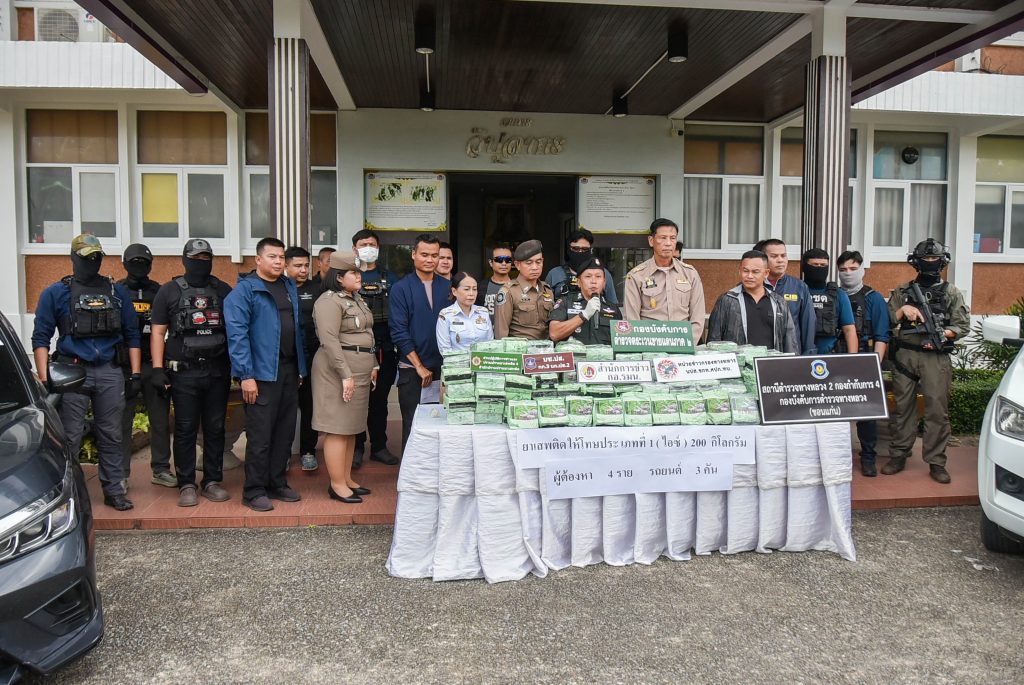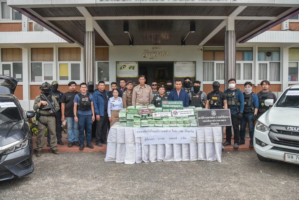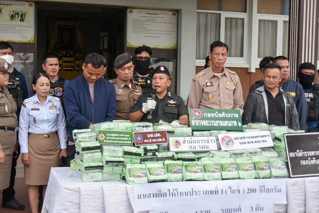 ของกลางเป็น ยาไอซ์ น้ำหนักรวมประมาณ 200 กิโลกรัม และ รถยนต์ 3 คัน