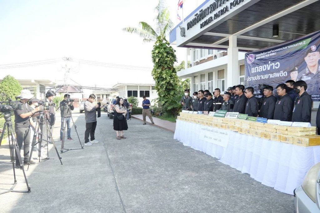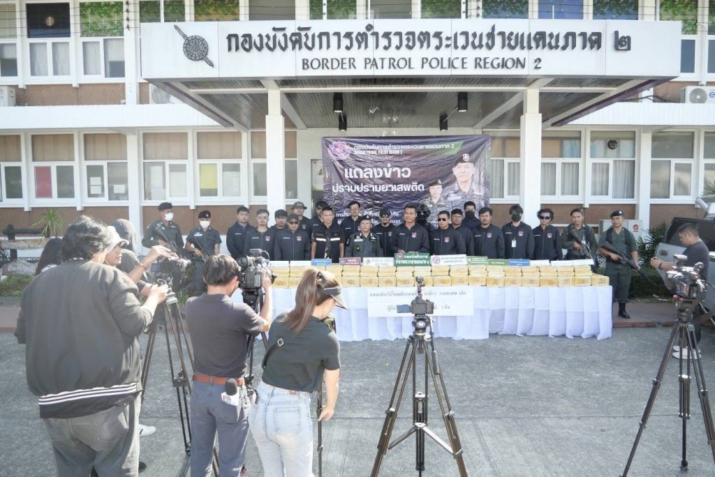 พล.ต.ต.วุฒิพงษ์ เย็นจิตต์ ผบก.ตชด.ภาค 2 มอบหมายให้ พ.ต.อ.คณิต กลิ่นศรีสุข รอง ผบก.ตชด.ภาค 2 พร้อมด้วย พ.ต.ต.ชัยวัฒน์ ศรีค้อ สว.ขว.ฝอ.บก.ตชด.ภาค 2 ร่วมแถลงข่าวการจับกุมคดียาเสพติดรายสำคัญ