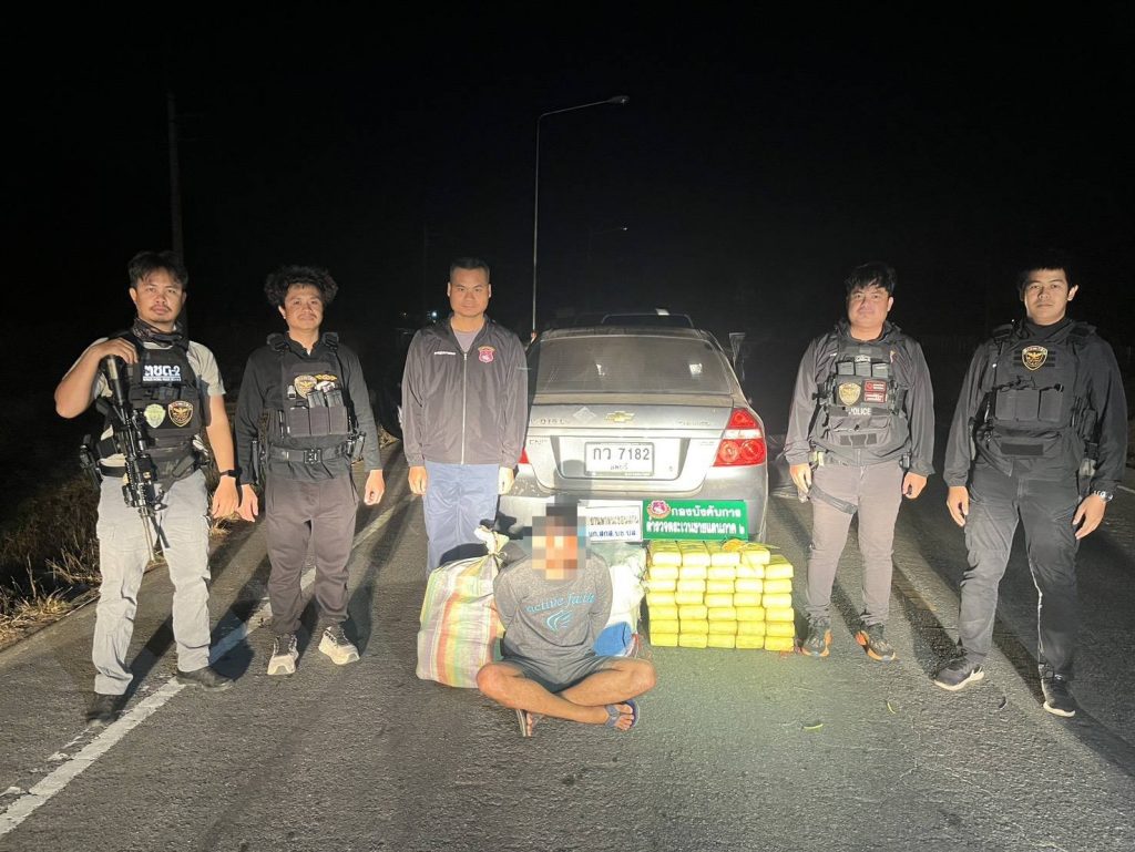 สถานที่จับกุม : บริเวณริมถนน หมายเลข 2246 ระหว่างหลัก กม.ที่ 12 – 13 ต.โคกสง่า อ.พล จว.ขอนแก่น