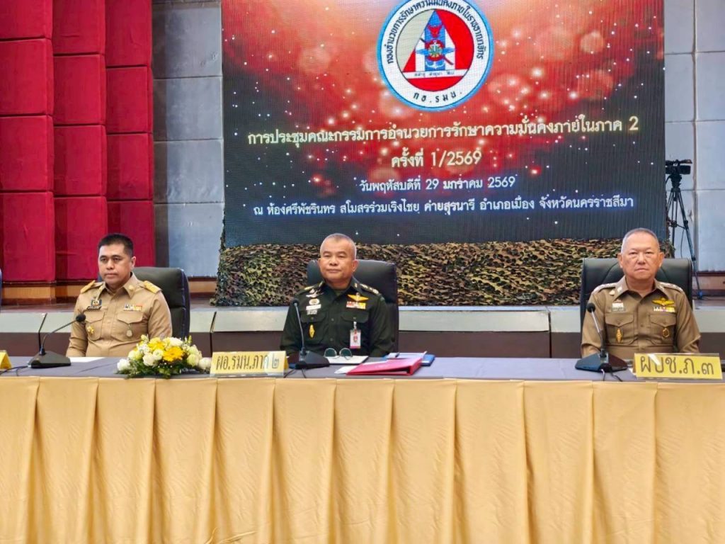 พล.ต.ต.วุฒิพงษ์ เย็นจิตต์ ผบก.ตชด.ภาค2 เข้าร่วมประชุมคณะกรรมการอำนวยการรักษาความมั่นคงภายในภาค 2 ครั้งที่ 1/2569 เพื่อขับเคลื่อนการเเก้ไขปัญหาความมั่นคงในพื้นที่ภาคตะวันออกเฉียงเหนือ บูรณาการการทำงาน ประเมินผล เเละให้คำเเนะนำเเก่ กอ.รมน.จังหวัด ณ ห้องศรีพัชรินทร สโมสรร่วมเริงไชย ค่ายสุรนารี อ.เมือง จว.นครราชสีมา โดยมีผู้อำนวยการรักษาความมั่นคงภายในภาค 2 เป็นประธาน