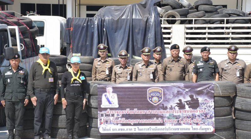 ผบก.ตชด.ภาค 2 รับมอบยางรถยนต์จาก รอง ผบช.ภ.4 และ ผบก.ภ.จว.มหาสารคาม เพื่อใช้ในภารกิจปกป้องอธิปไตยในพื้นที่ชายแดน ไทย – กัมพูชา